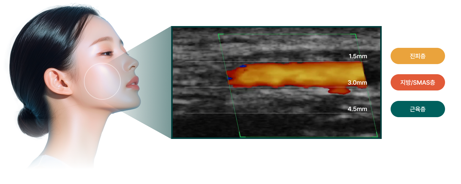 그 이유는, 피부층을 직접 보고 맞춤 조절하는 초음파 진단 시스템 때문입니다.