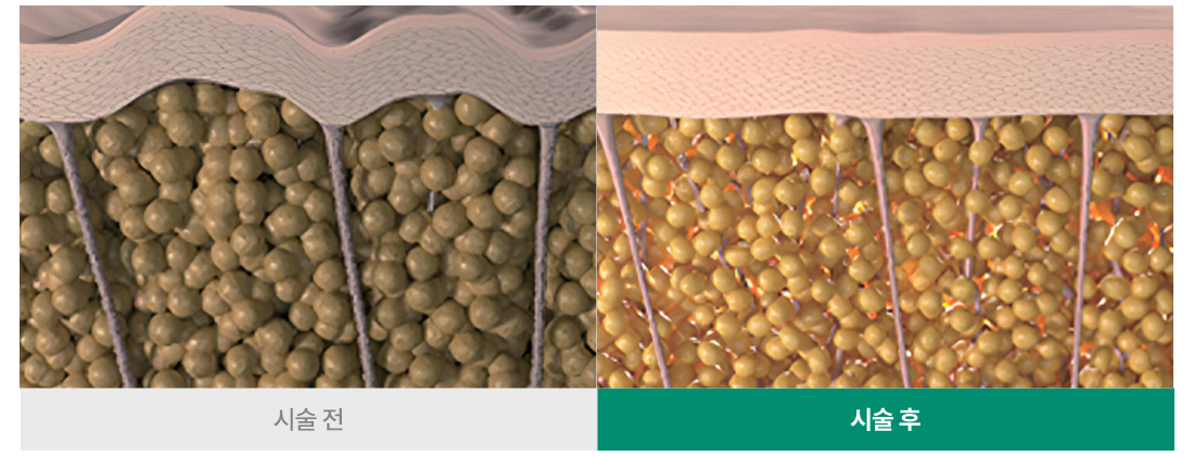 표피층과 진피층의 콜라겐 자극을 통한 수축을 유도하여 즉각적인 타이트닝 효과를 가져옵니다.
