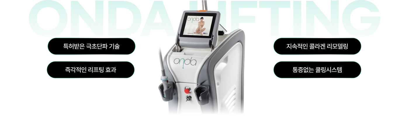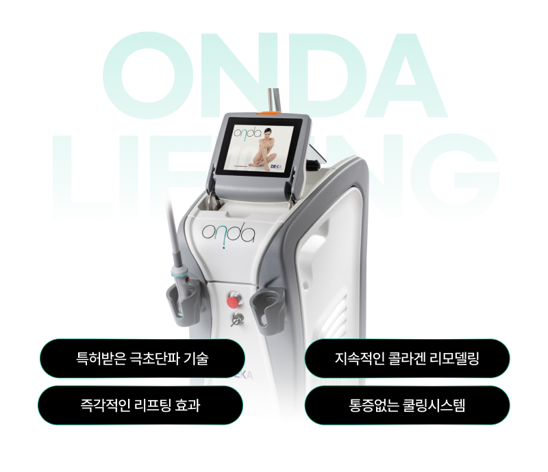 이탈리아 DEKA사의 ONDA 리프팅은 고주파(RF), 초음파(HIFU)를 대신하는, 극초단파(Microwave)를 사용하는 레이저입니다.