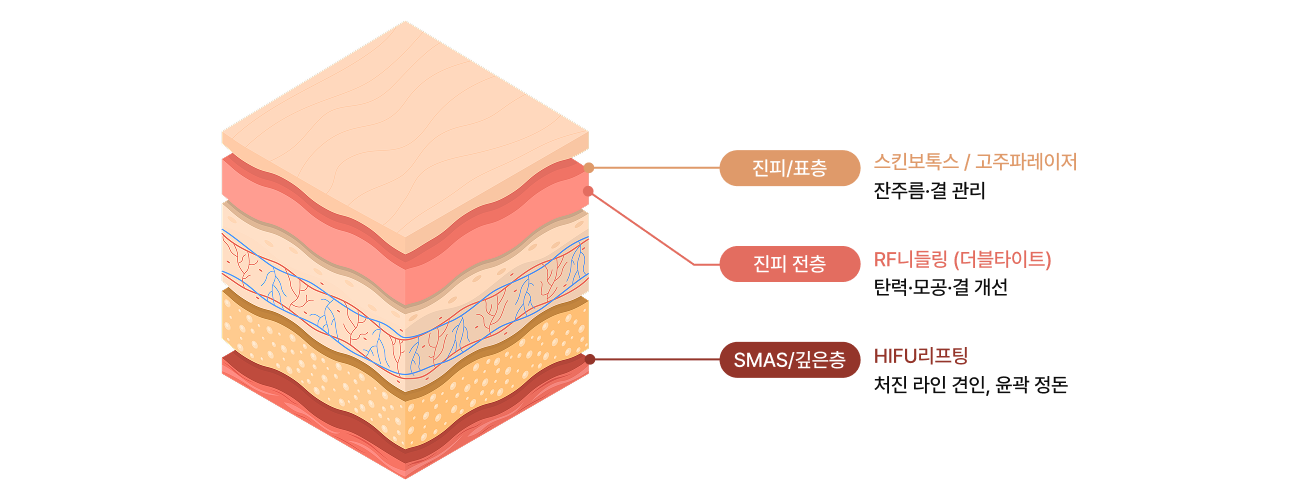 진피 – 지방 – SMAS 각 층에 맞는 정확한 에너지, 깊이를 선택합니다.