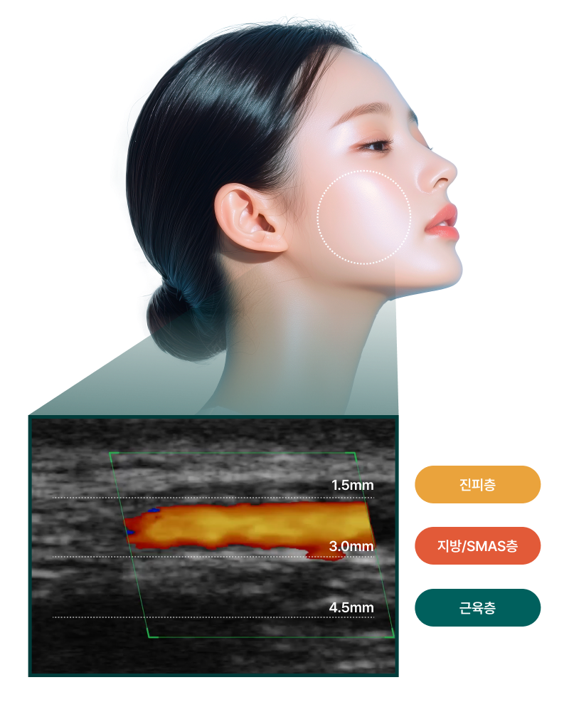 그 이유는, 피부층을 직접 보고 맞춤 조절하는 초음파 진단 시스템 때문입니다.