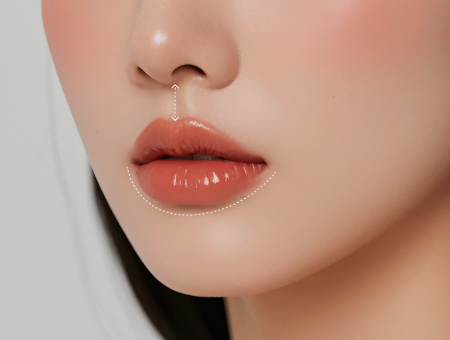 인중의 중앙 라인(Philtral Column)이 길거나 평평한 경우, 코 밑과 입술의 거리가 길어 보입니다. 루브는 내측 인중을 따라 볼륨을 세워 인중이 짧고 탄력 있게 올라온 듯한 인상을 만듭니다.